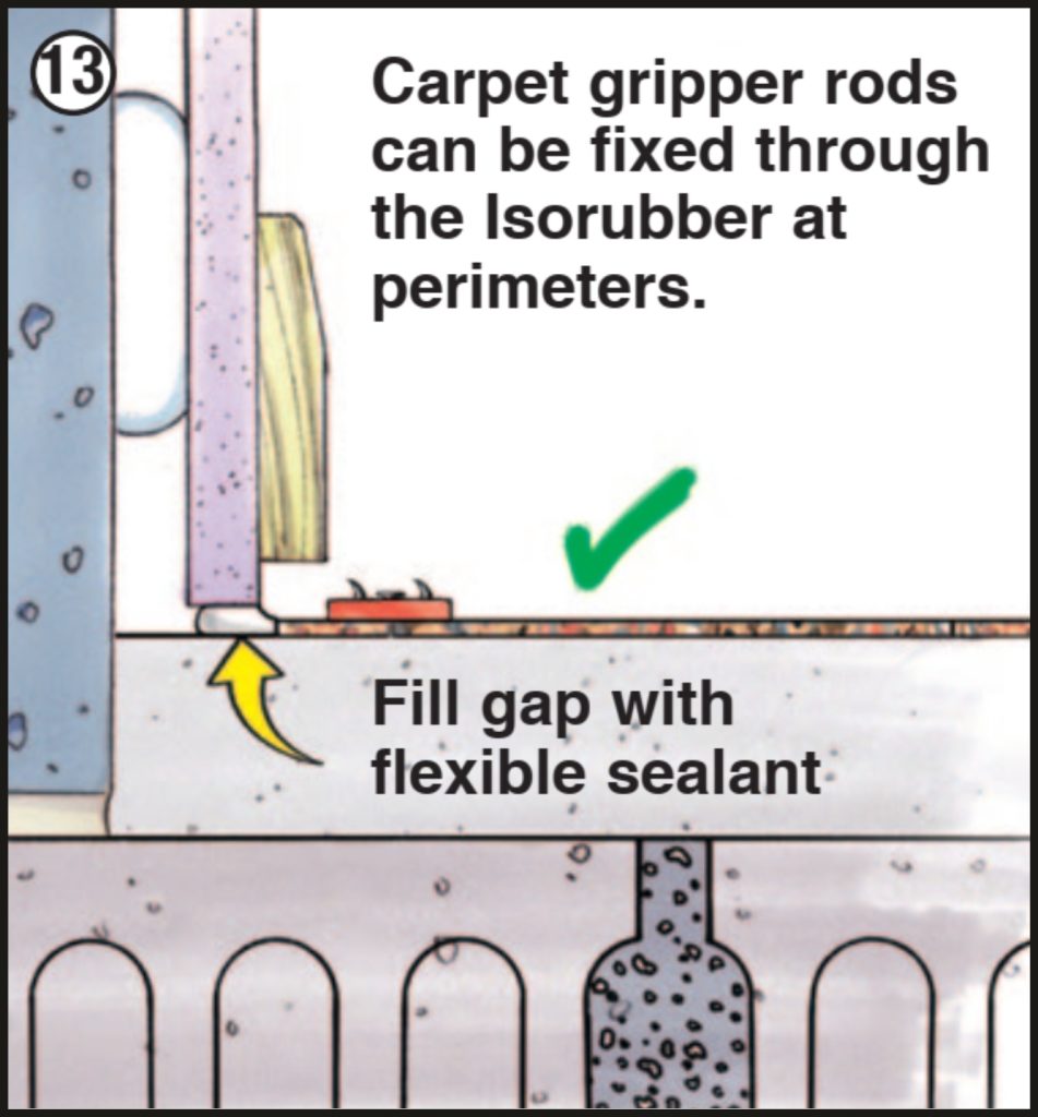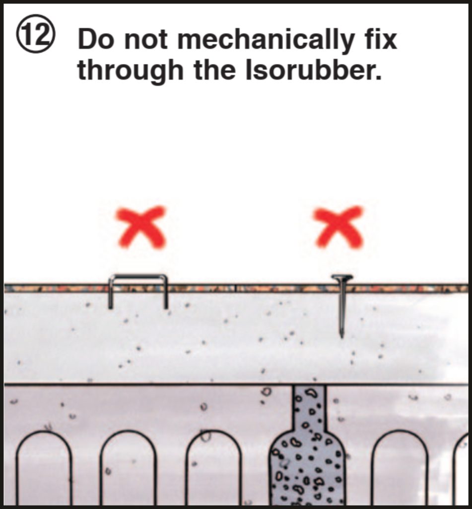 Robust Detail E-FC-10 is a fixed, resilient surface layer acoustic insulation system for solid insitu floors making it perfect for sound proofing & noise reduction applications. The system consists of 3mm thick Isorubber Top or Isorubber FR< adhered to the screeded or power floated surface of a solid insitu floor using Isobond Adhesive and an MF Ceiling below. E-FC-10 provides 3 Code for Sustainable Homes Credits upon registration.