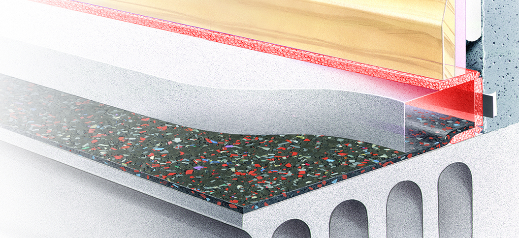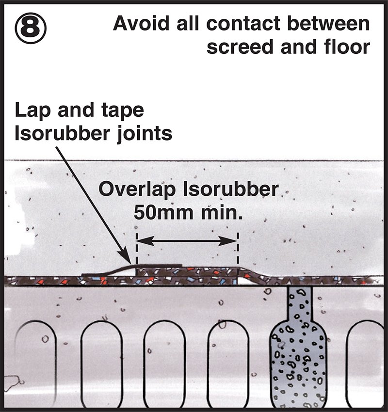 The E-FC-12 system incorporates Isorubber HP3 which, at 3mm thick, is the thinnest Robust Detail compliant under screed insulation.