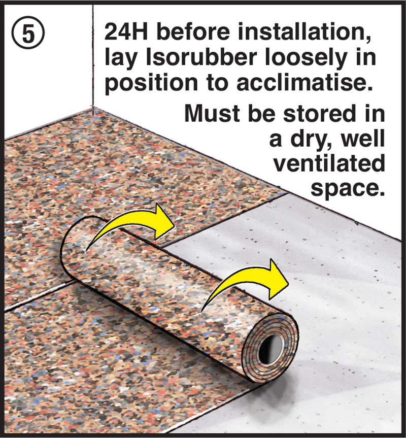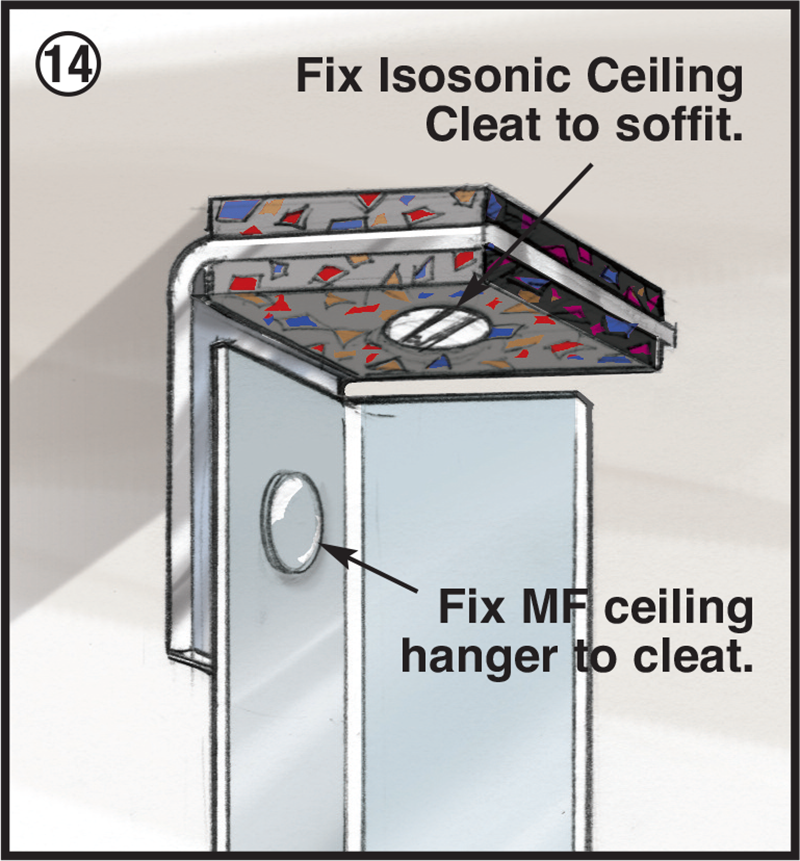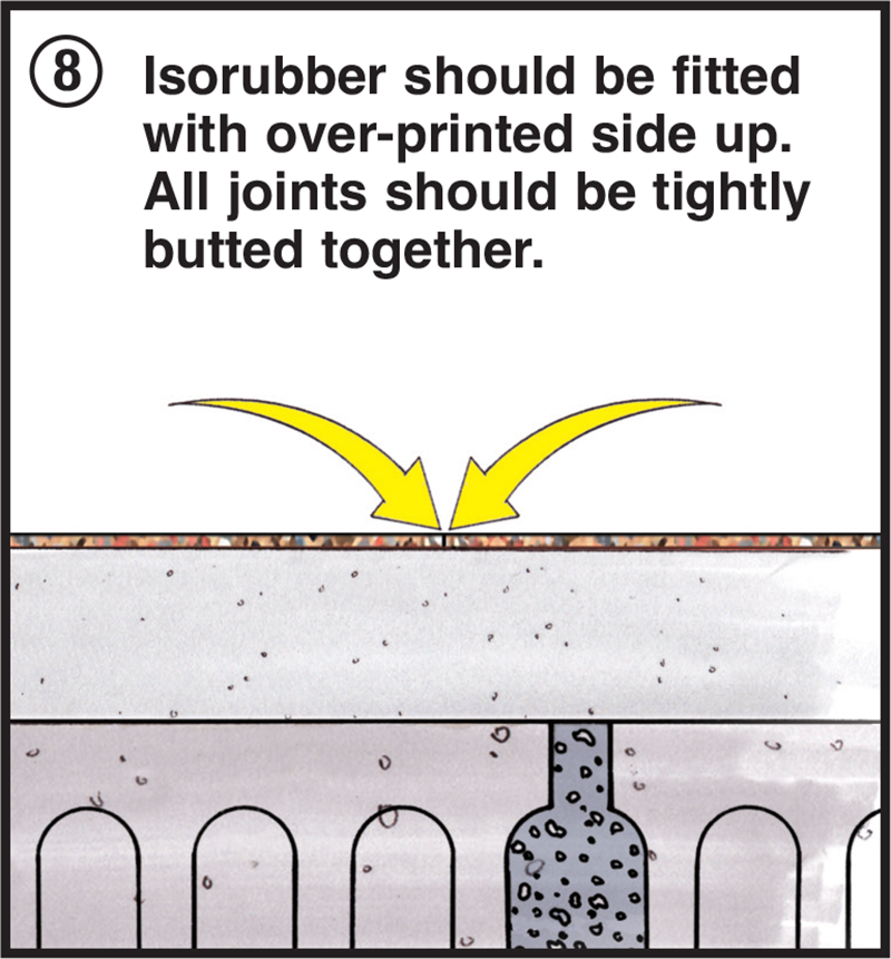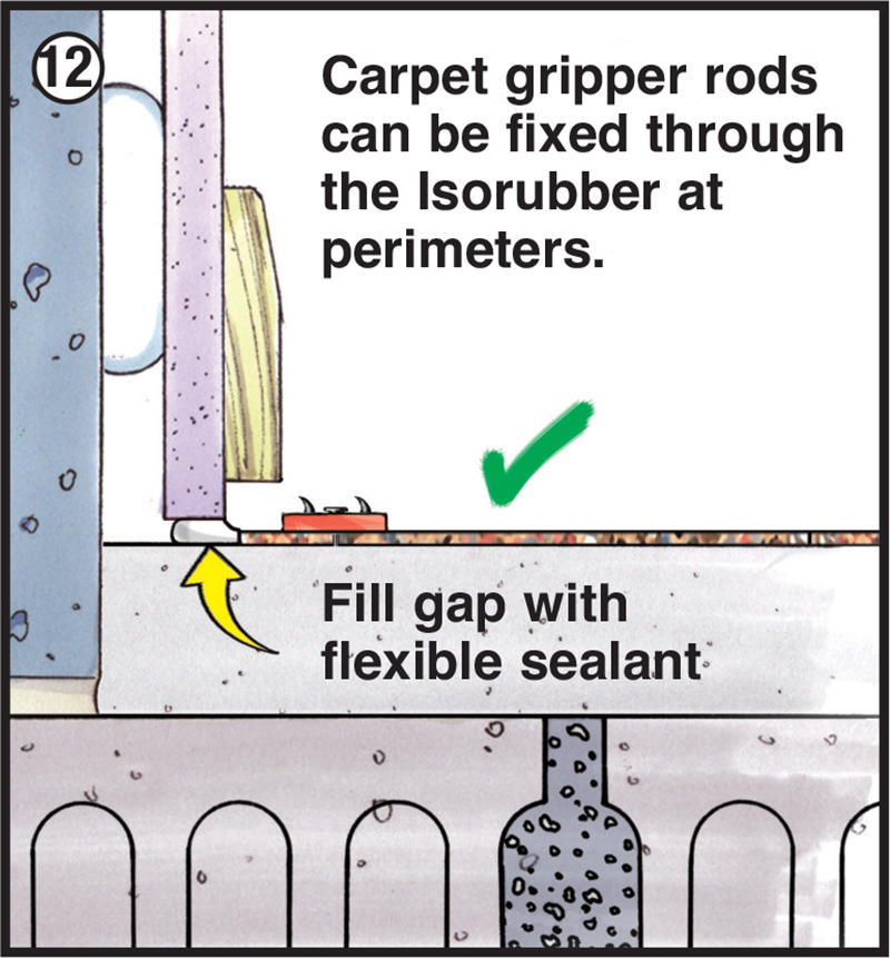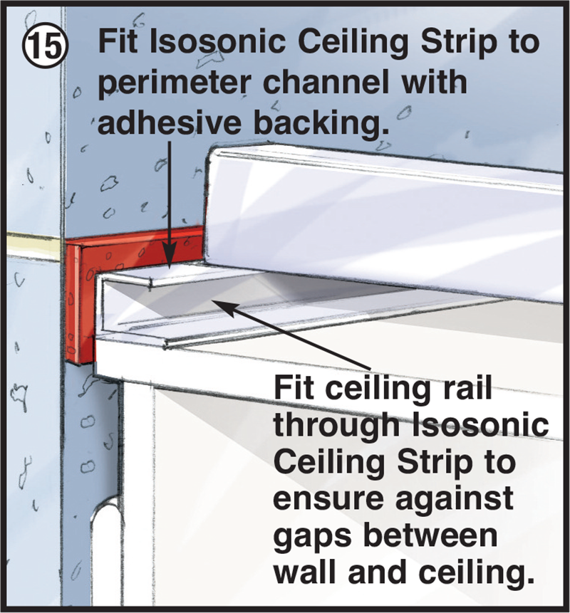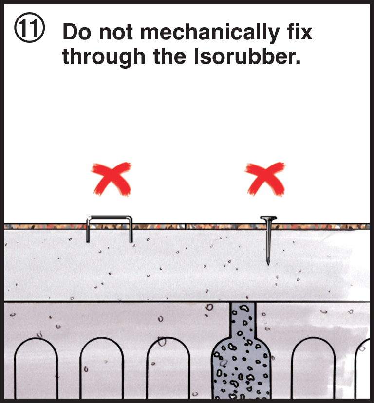 It consists of Isorubber Base resilient acoustic insulation below a sand & cement screed with Isoedge 6/260 perimeter separation strip and a Metal Frame ceiling supported on Isosonic Ceiling Cleats or an Isosonic Ceiling treatment.