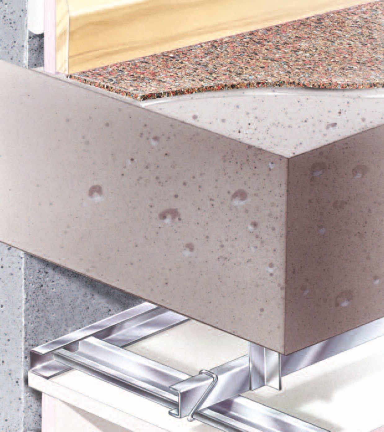 The Isossonic Basefloor system utilises Isrubber Base below a screed and is suitable for most types of concrete structural floor.